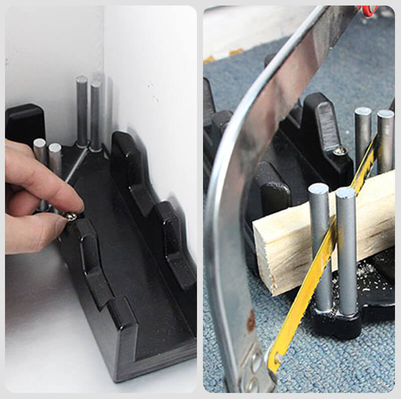 Tillbehörsverktyget för geringssÄg Àr framtaget för dig som behöver ett grundlÀggande verktyg för att hitta vinkeln och hÄlla saker pÄ plats nÀr du kapar. LÀtt att anvÀnda. AnvÀndbart för DIY, rörinstallation och renovering.