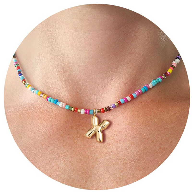 1 × Trendig halsband med 26 bokstavshängen och färgglada pärlor