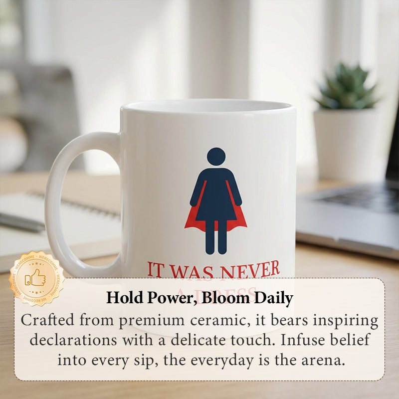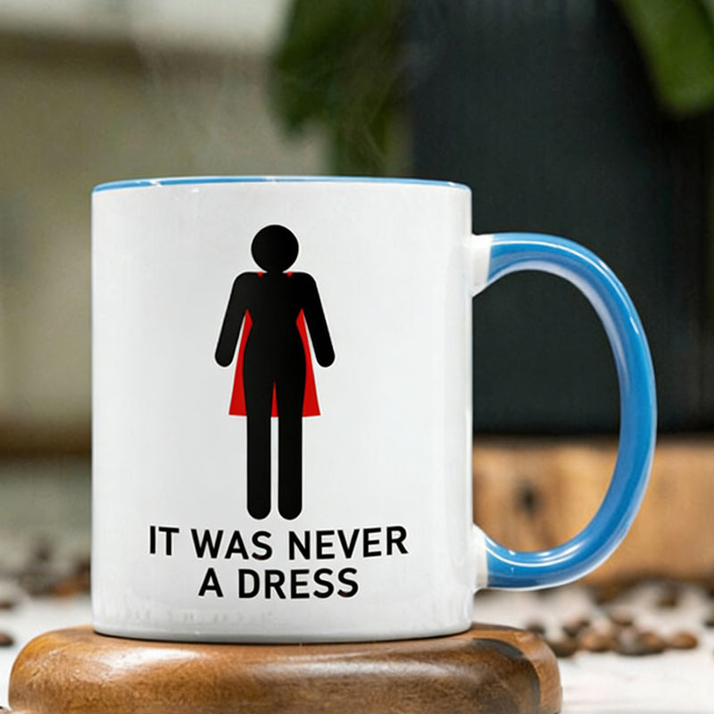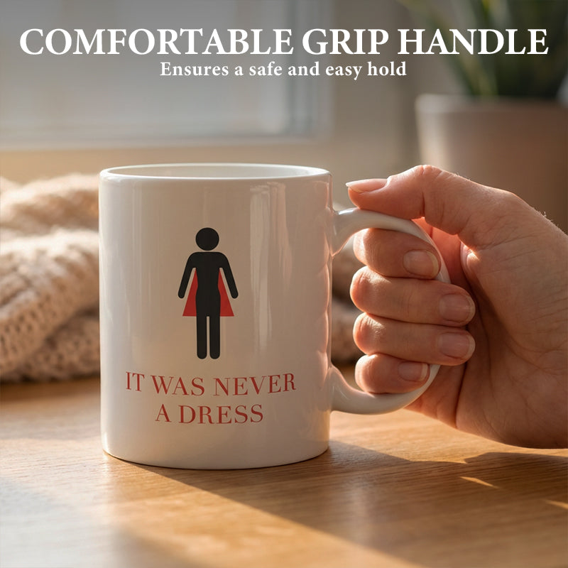 FEMINISTISK BETYDANDE DESIGN - Med den smarta grafiken "It Was Never a Dress" fungerar denna mugg som en daglig påminnelse om styrka och potential och förvandlar en enkel kaffepaus till ett ögonblick av inspiration.