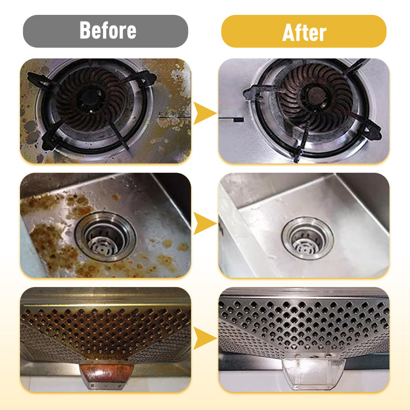 Mild men effektiv formula: Trots att den effektivt avlÀgsnar fett Àr den skonsam och ofarlig för ytan. Den Àr lÀmplig för anvÀndning pÄ rostfritt stÄl, kakel och andra material utan att skada eller slipa av ytans glans. MiljövÀnlig och lÀmplig för daglig anvÀndning i köket.