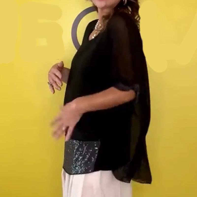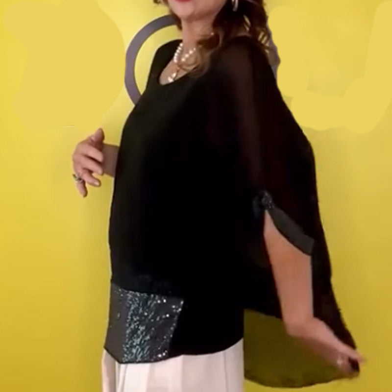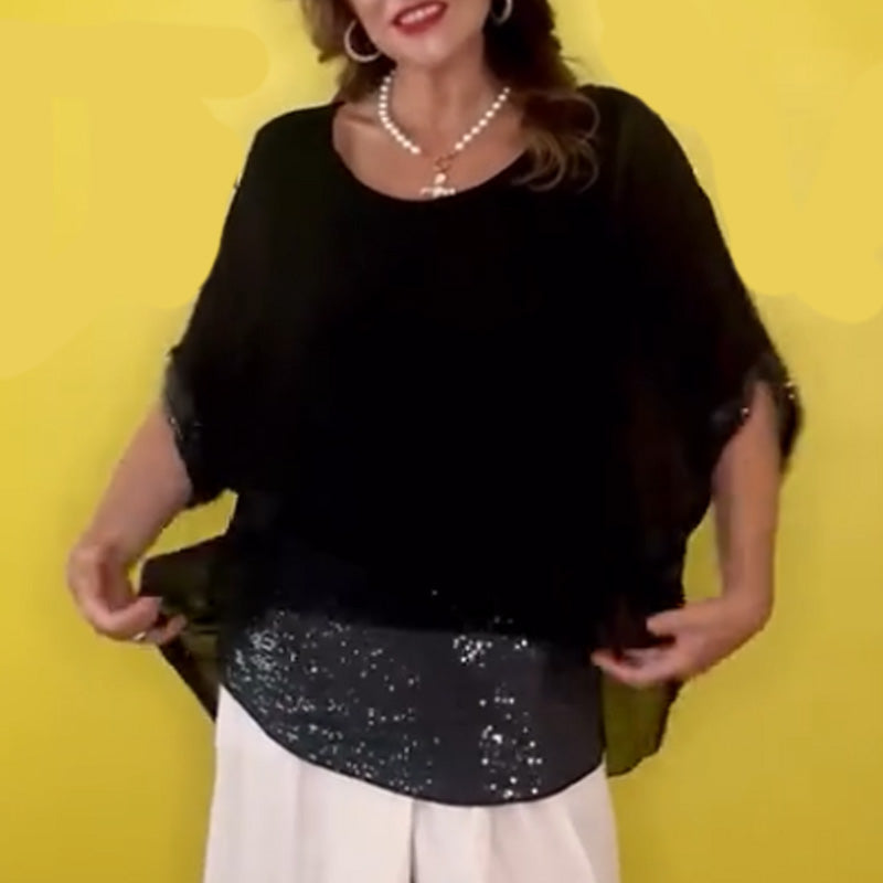 ⏳Tidsbegränsad Special⏰Svart rundhalsad nättopp med dolmanärmar och paljetter