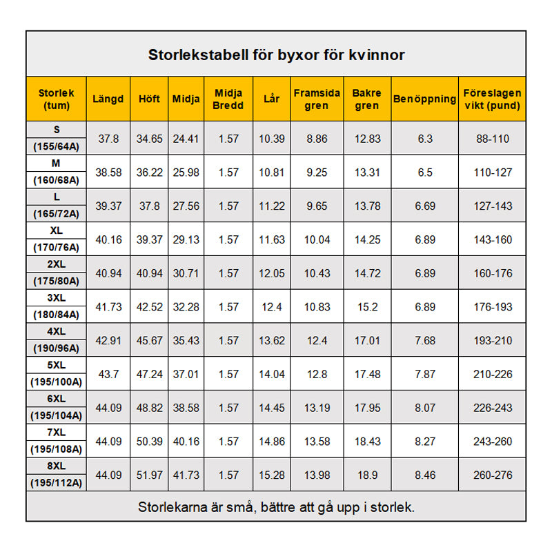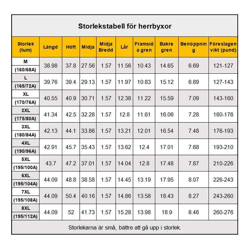 Storlek: S, M, L, XL, 2XL, 3XL, 4XL, 5XL, 6XL, 7XL, 8XL