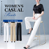Dambyxor med hög midja och raka ben, trimmad benform, förlängd benlinje, visuellt högre och skisserar den smala kroppsformen.