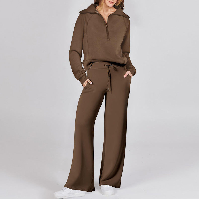 Paketet innehåller: 1 * Avslappnad långärmad topp med dragkedja & Byxor Tvådelat set