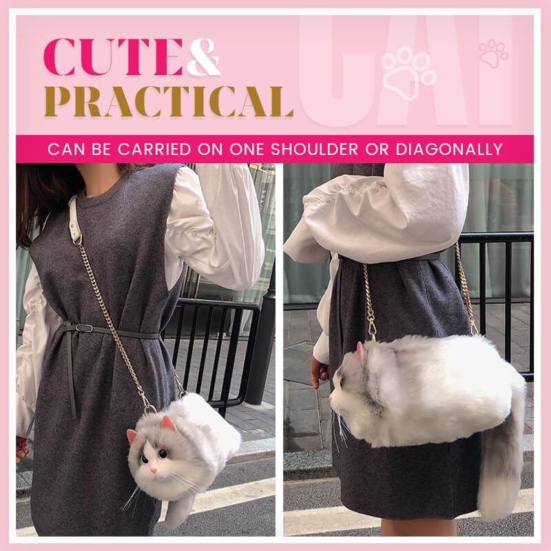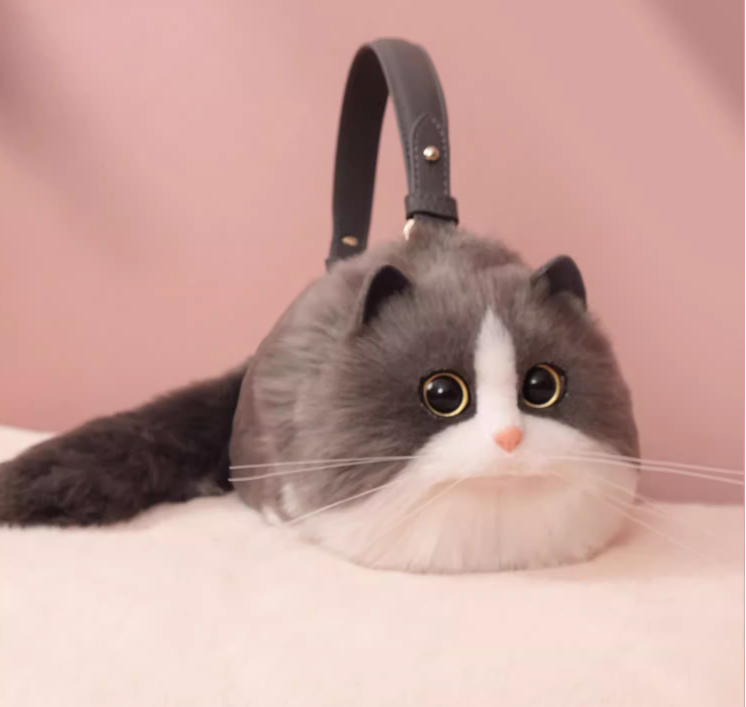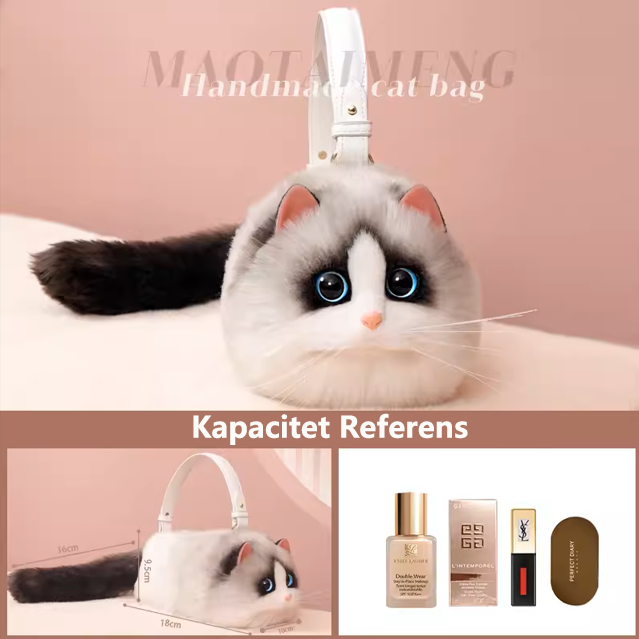 Kreativa och fashionabla kattväskor, rent handgjorda, specialanpassade konstgjorda fluff, släta och hudvänliga, jämförbara med äkta fluff. -