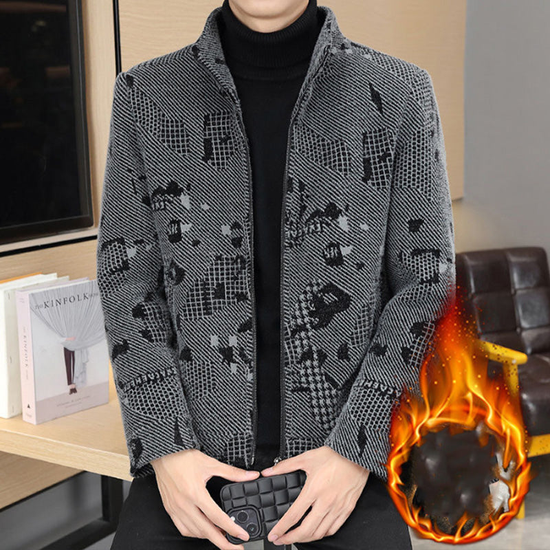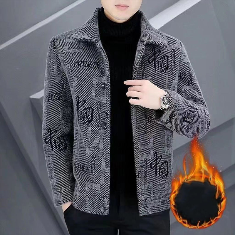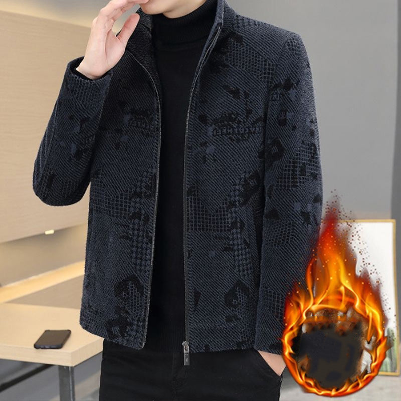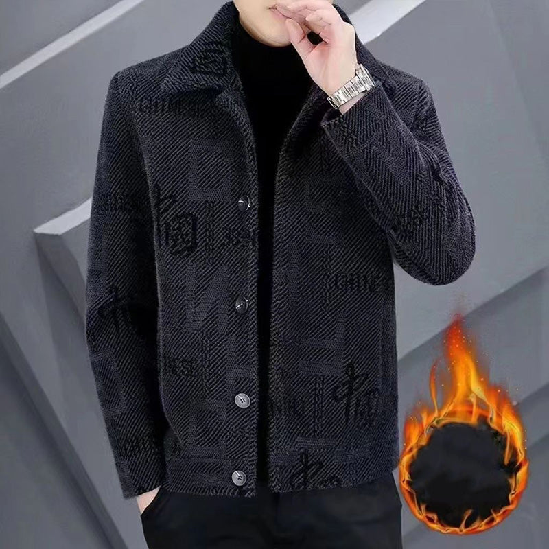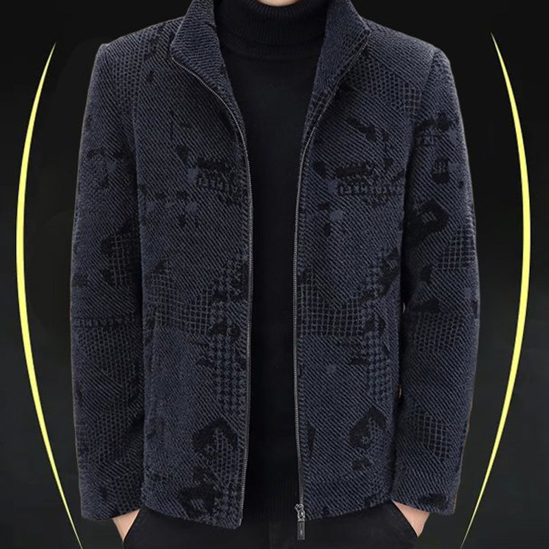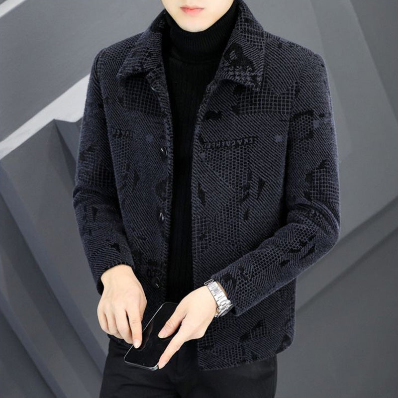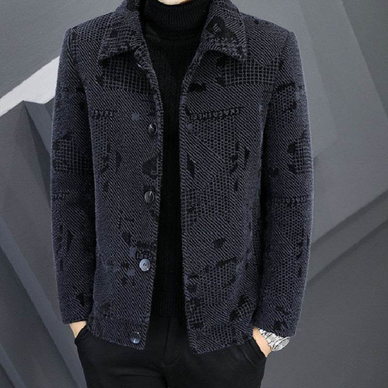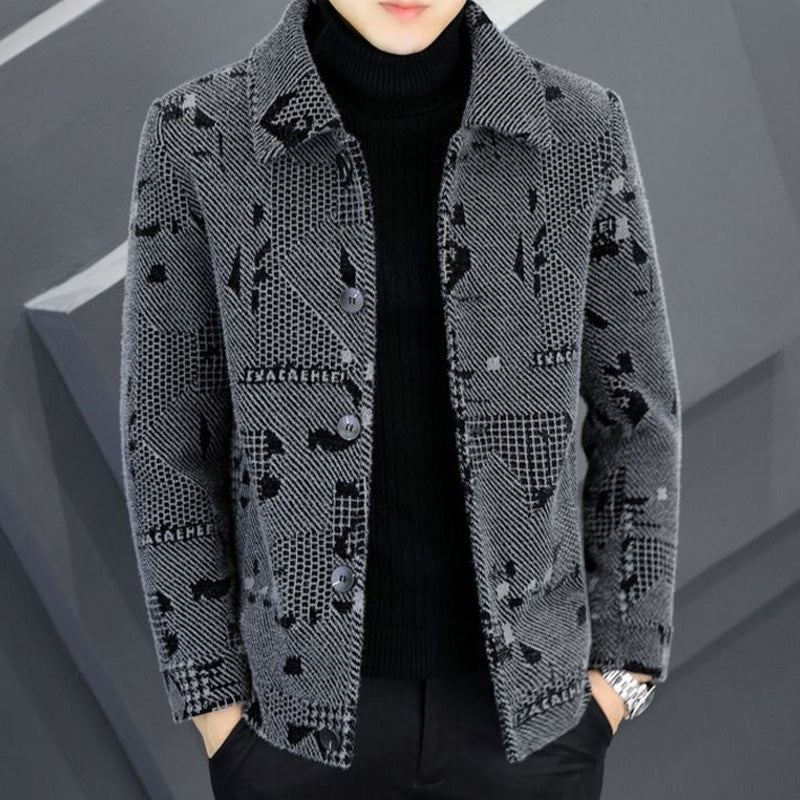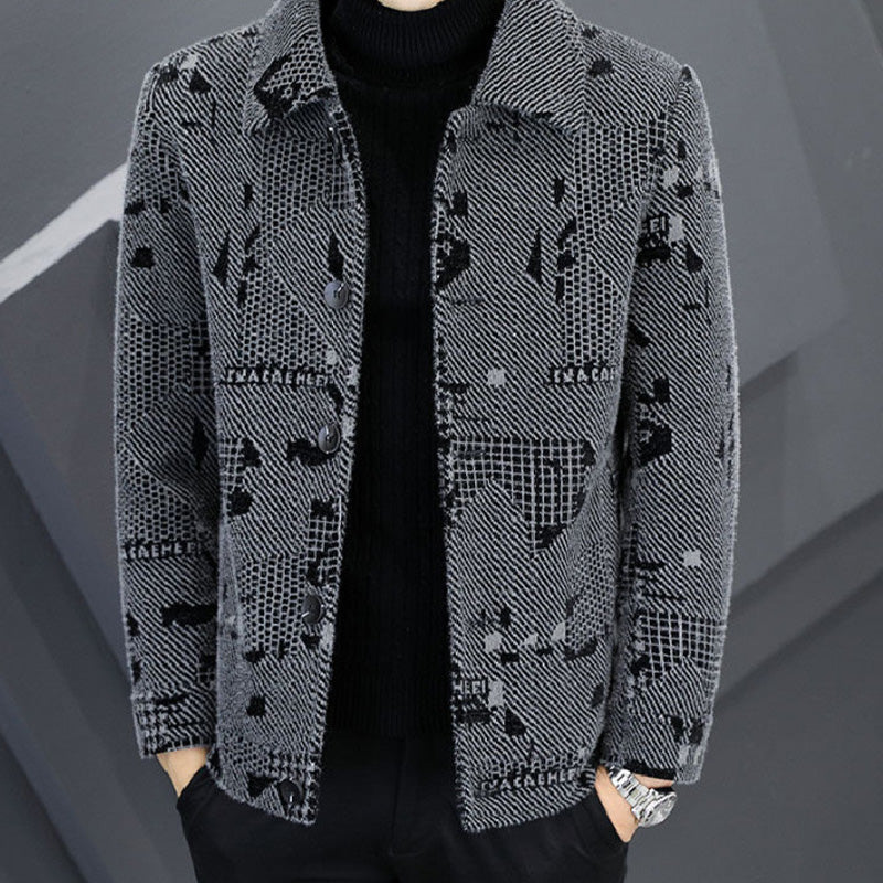 Herrjacka i tweed med mönstrad krage för höst och vinter