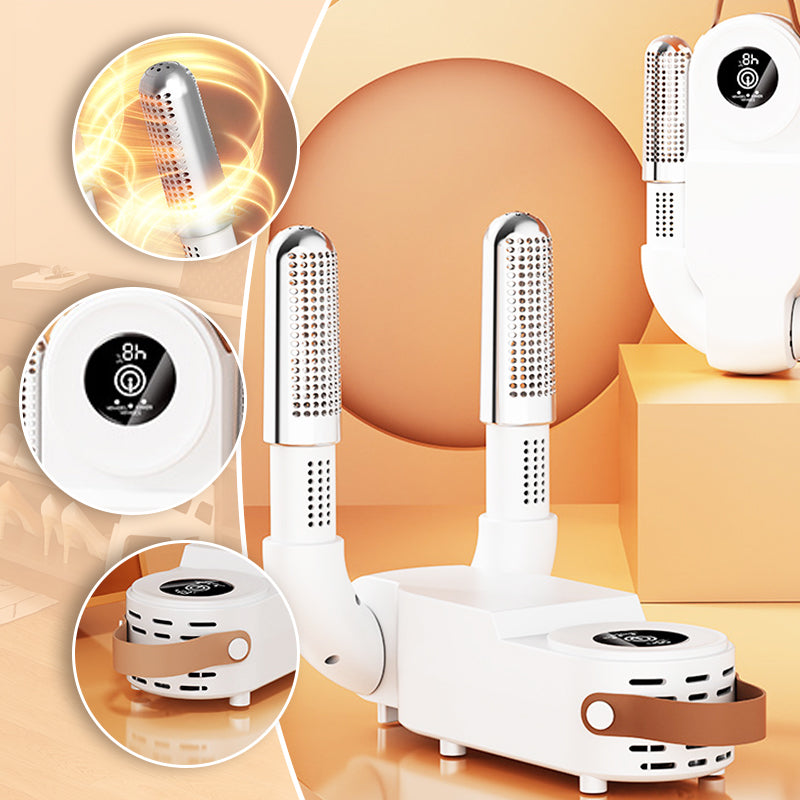 SNABBTORKANDE PRESTANDA – Utrustad med 3D varm luftcirkulation, erbjuder denna skotork konstant temperatur luftflöde som tränger in i varje hörn av din fotbeklädnad. Den jämna värmefördelningen påskyndar borttagningen av fukt, vilket lämnar skorna fräscha och torra inom några timmar. Den är utformad för att förhindra kvarstående fukt som ofta leder till lukt, bakterier och obehag, vilket säkerställer en renare och hälsosammare användarupplevelse.