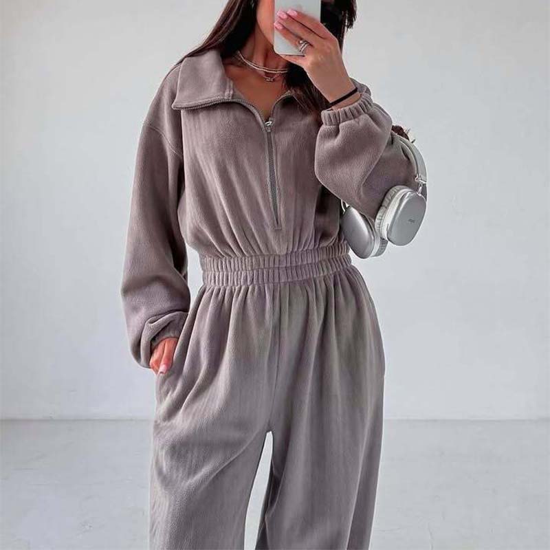 Mysig varm jumpsuit med dragkedja fram