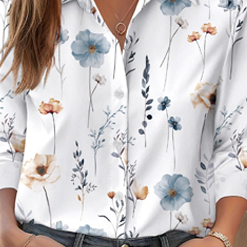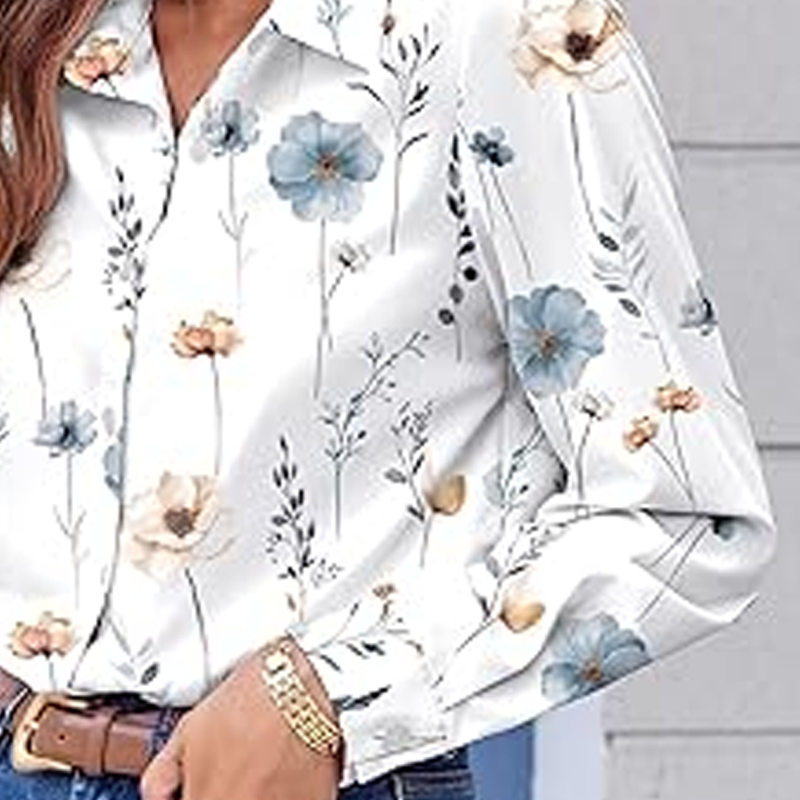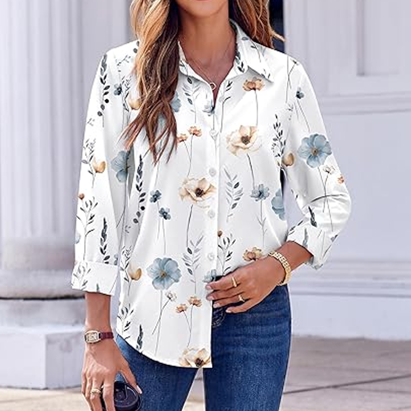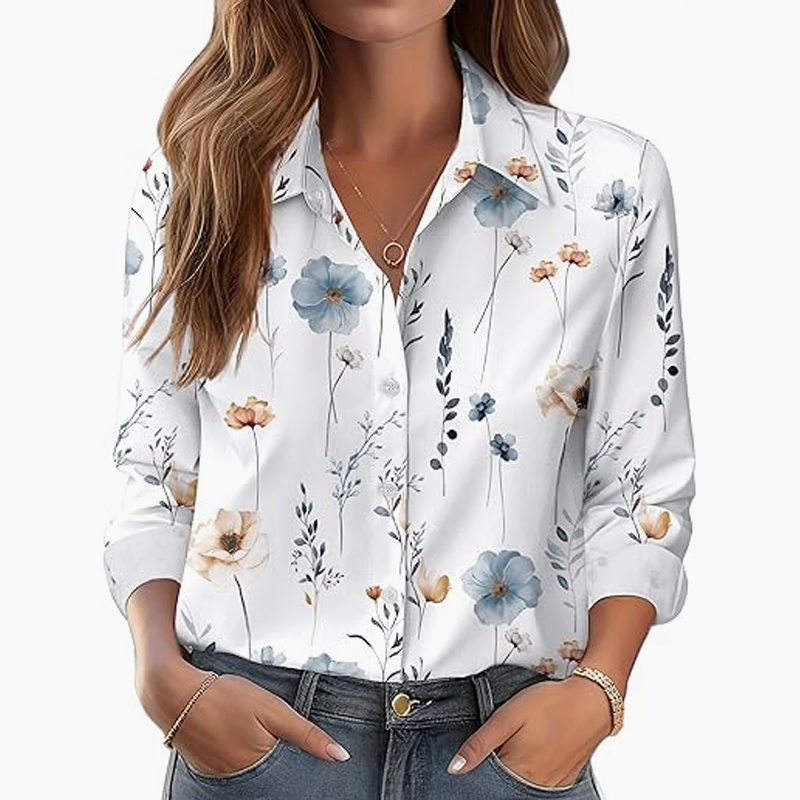 MODEMEDVETEN TRYCKT DESIGN: Skjortan har eleganta blommönster som ger visuell skönhet och bryter mot monotonin i vardagliga enfärgade skjortor.