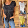 FLATTERANDE SILHUETT: Damens enfärgade kortärmade T-shirt är designad för att passa alla kroppstyper, med tofs nederkanten som ger en dynamisk element som kan dra uppmärksamheten bort från midjan och skapa en visuellt tilltalande silhuett.