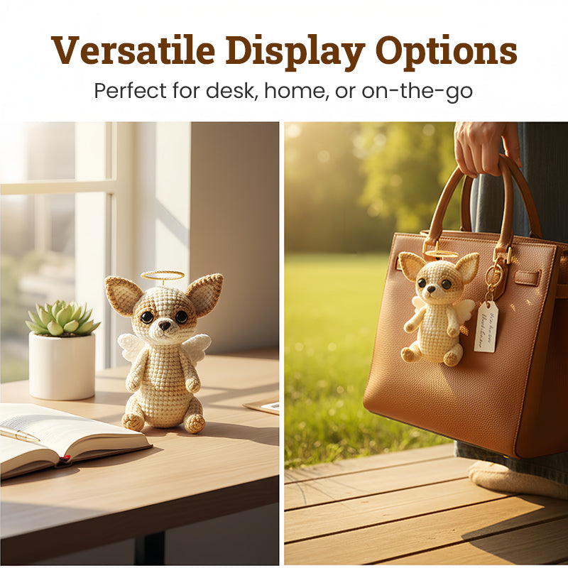 Unik design: Varje bit är noggrant virkad för att fånga den bedårande andan hos din hund. Tillägget av små vingar förvandlar ditt vardagliga husdjur till en vårdad skyddsängel och firar deras speciella plats i ditt liv.