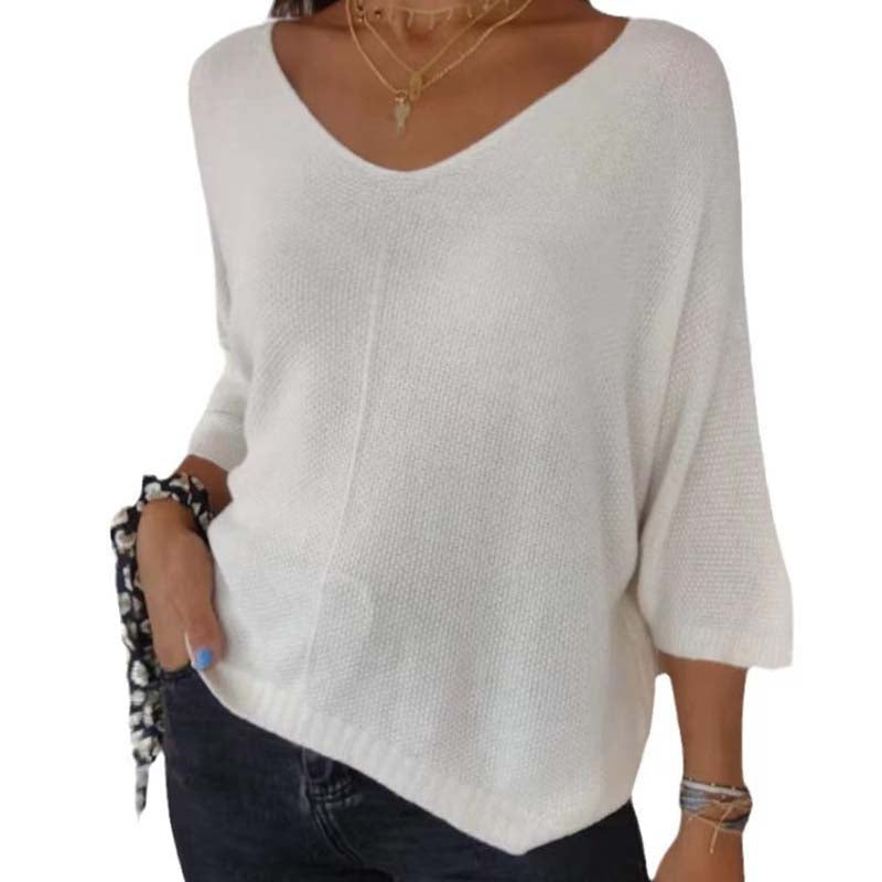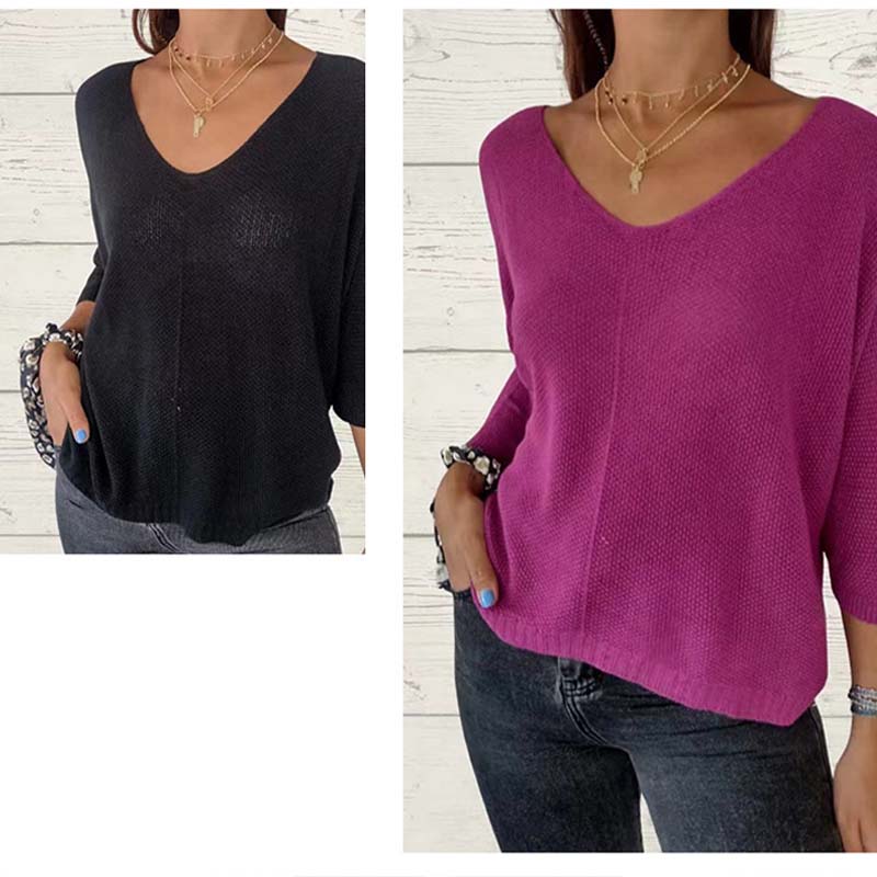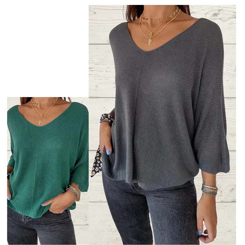 Paketinnehåll: 1 * Enfärgad V-ringad stickad topp för kvinnor med fladdermusärmar