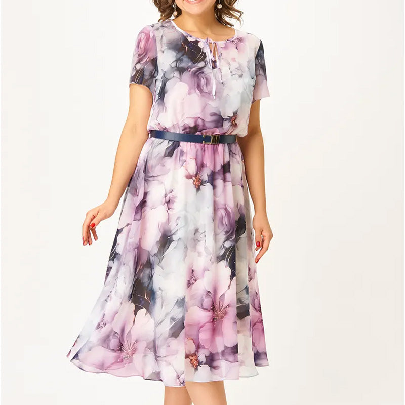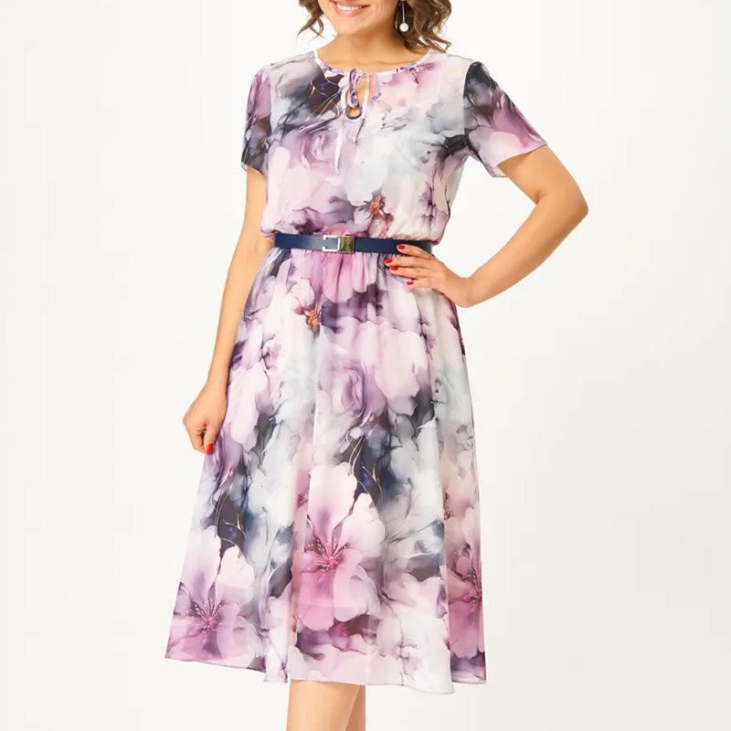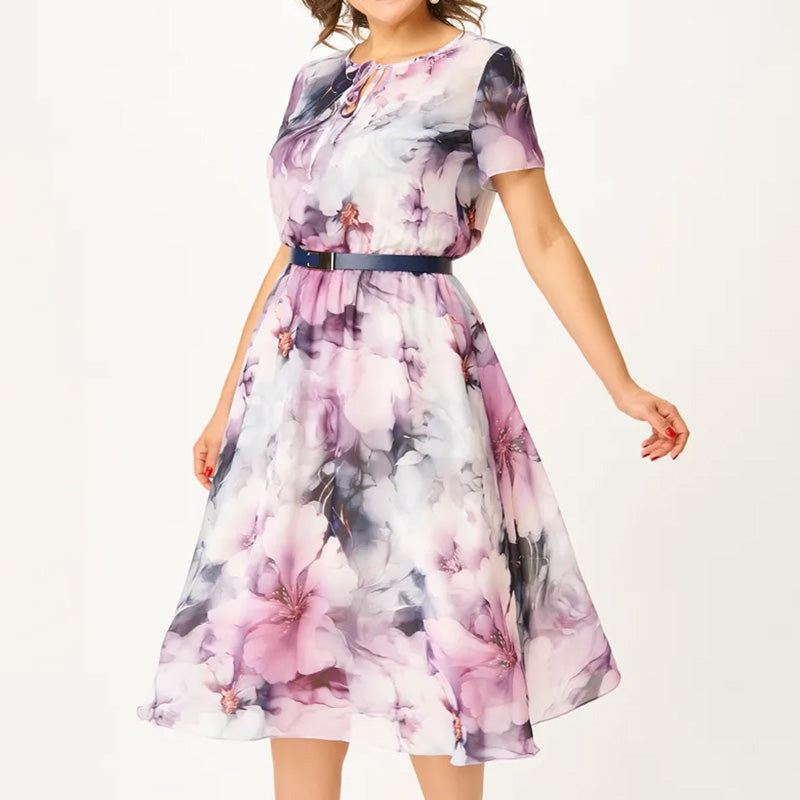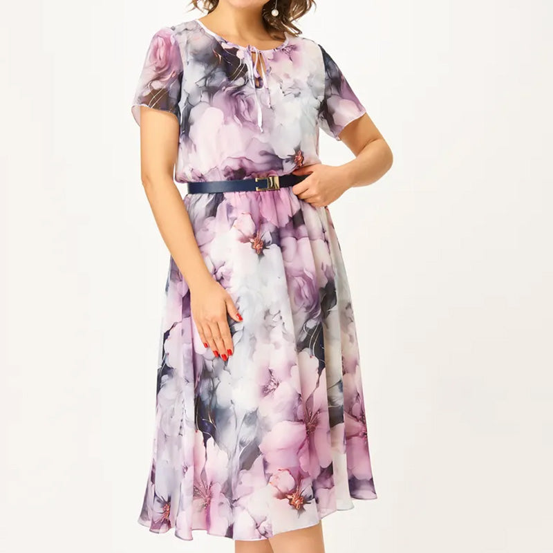 Paketet innehåller:1*Elegant kortärmad midiklänning med blommigt tryck