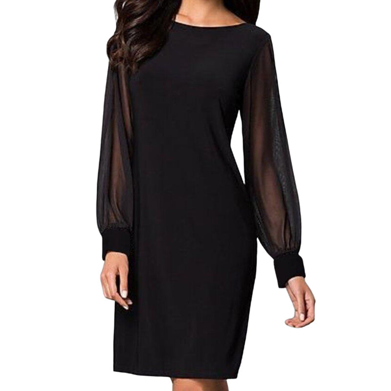 Elegant Sheer Mesh Lantern Sleeve Bodycon Dress