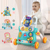 INTERAKTIVA LEKSAKER: Gåstolen är utrustad med engagerande och färgglada leksaker, inklusive knappar att trycka på, bollskjutningsleksaker, ritbord, etc., vilket främjar utvecklingen av finmotorik och håller ditt barn underhållet.