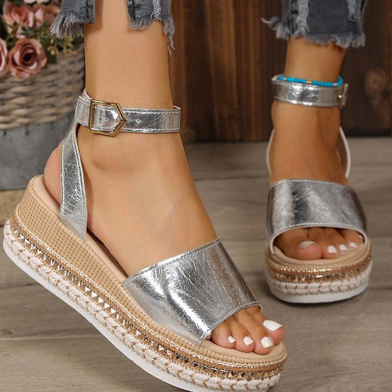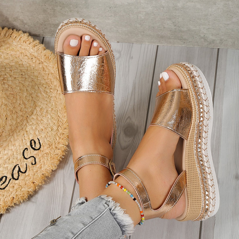 Glansiga Sandaler med Tjock Botten och Fiskmun