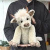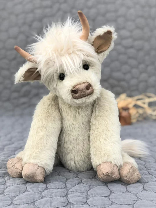 Jag är så stolt över att presentera en vacker vit Highland Cow. Denna ko är skapad i vackert PP-bomull, plysch och är helt handgjord och tar över 45 timmar att slutföra.
