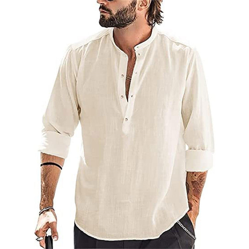 【FUNKTIONER】. Casual linneskjorta för män, har en ståkrage, enfärgad, smal passform, långa ärmar (kan rullas upp), knappslå.