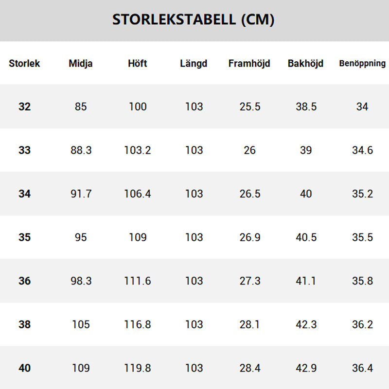 Storlek: 32, 33, 34, 35, 36, 38, 40