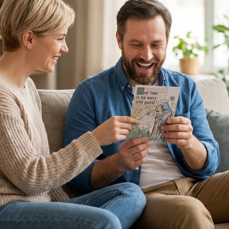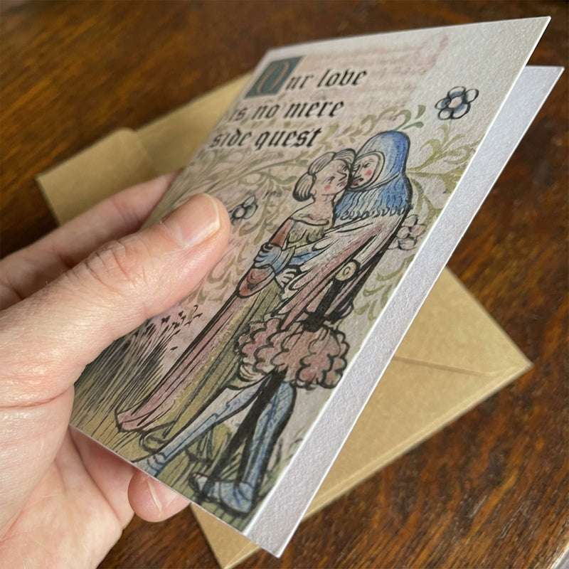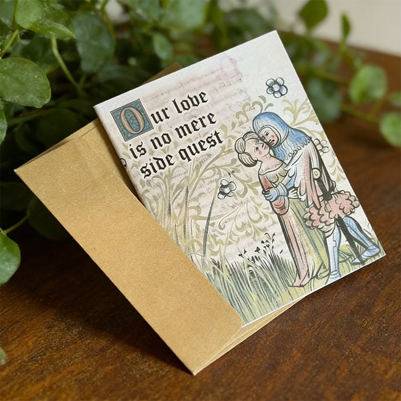 UNIK HUMORISTISK KOMBINATION - Skippa de generiska korten. Denna roliga blandning av autentisk medeltida konst och modern meme-humor skapar ett verkligt minnesvärt sätt att uttrycka din kärlek, vilket leder till ett gemensamt skratt och ett oförglömligt internskämt.