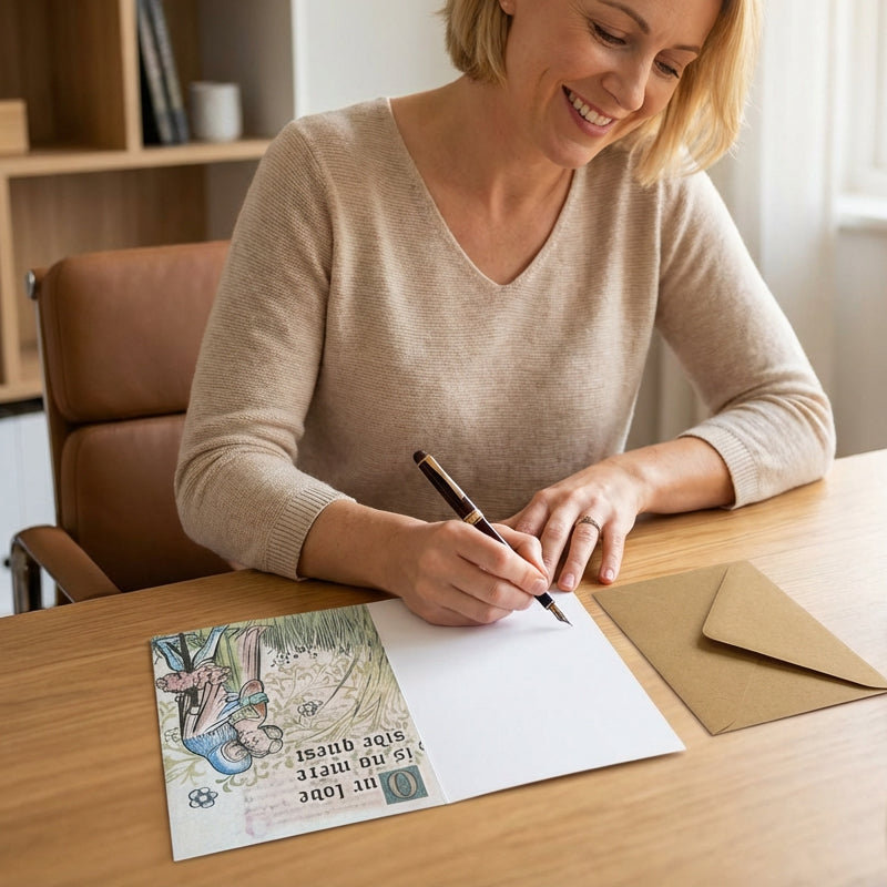 AUTENTISK MANUSKRIPTKONST - De intrikata illustrationerna i historisk stil förvandlar ett enkelt skämt till ett vackert minne. Det är en perfekt present till konstälskare och historieintresserade som uppskattar unik estetik och omsorg om detaljer.