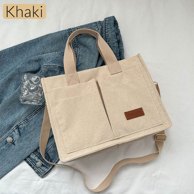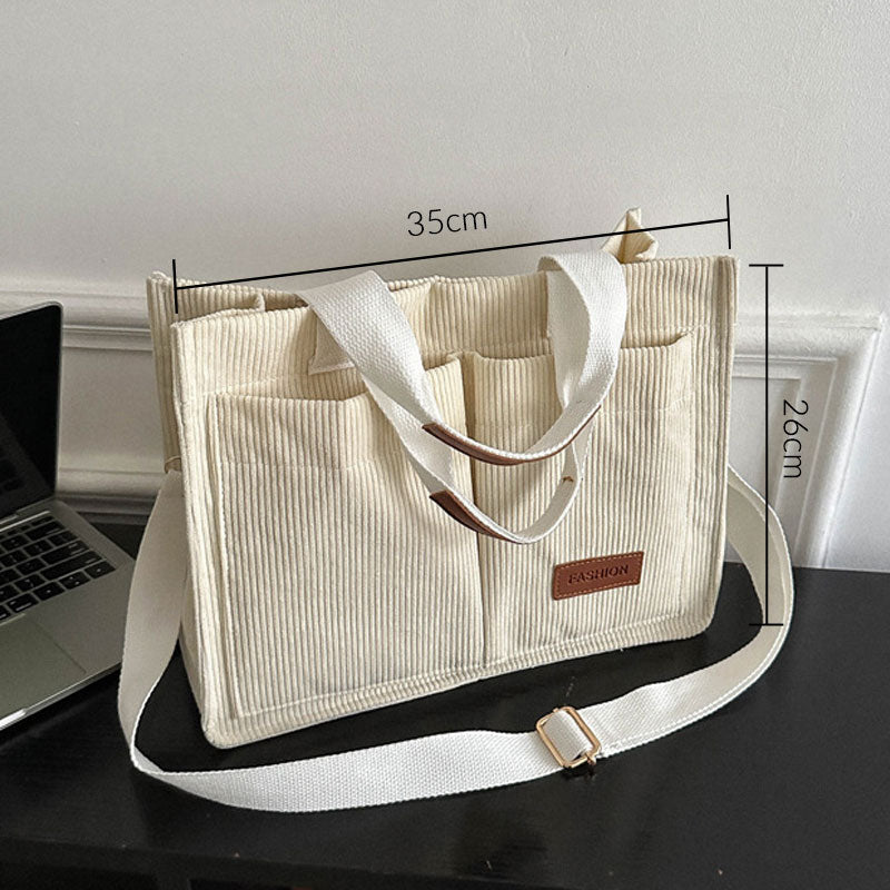[Idealisk gåva] Corduroy stor kapacitet axel & handväska