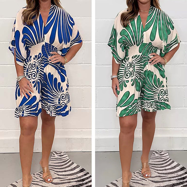 đ„ Nya BĂ€stsĂ€ljaređ„VĂ€xttryckt Avslappnad Kort Jumpsuit för Kvinnor