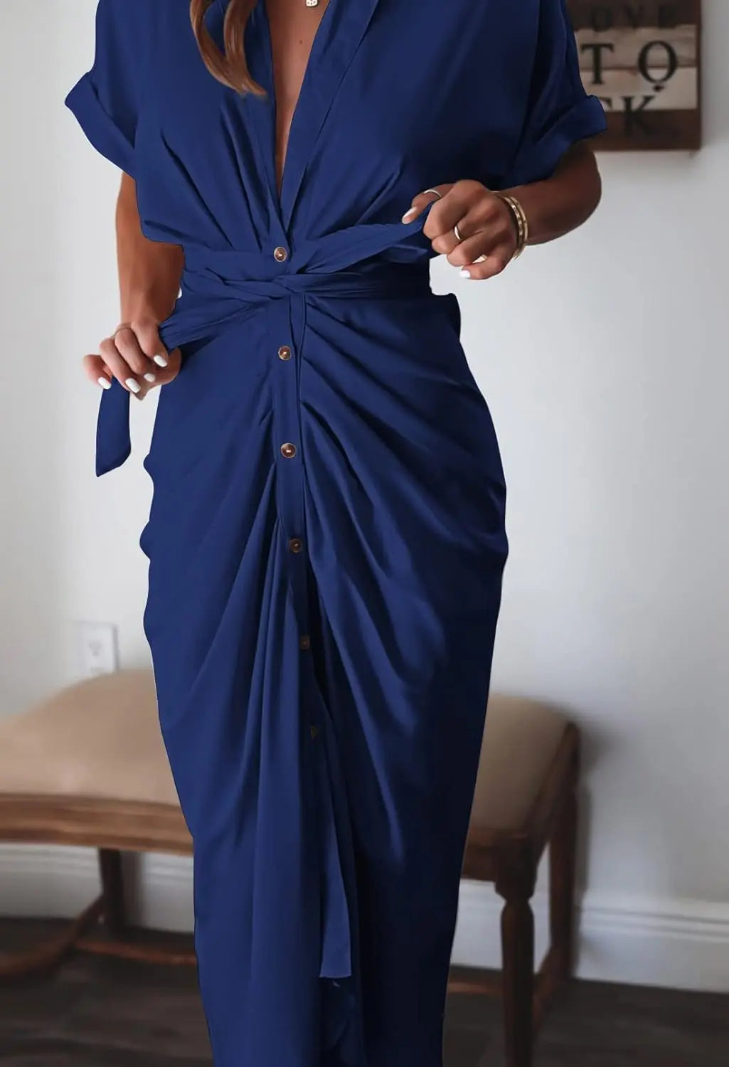 Välkommen till vår snygga kollektion med damkläder.✨ Vår expertutformade Women's Ruched Front Shirt Dress ser till att du skiner upp med självförtroende överallt. 🌟