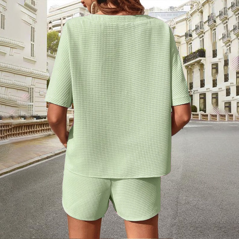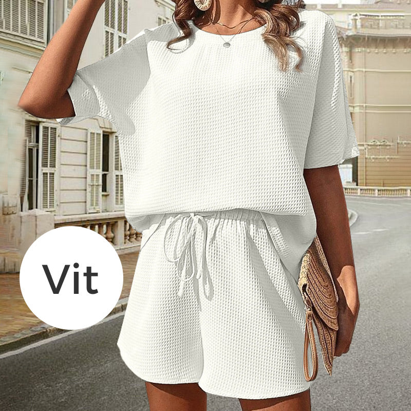 Kvinnors Avslappnade Lös Vaffel 2-Delad Set