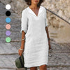 Kvinnors Bomull och Linne Avslappnad V-ringad Klänning