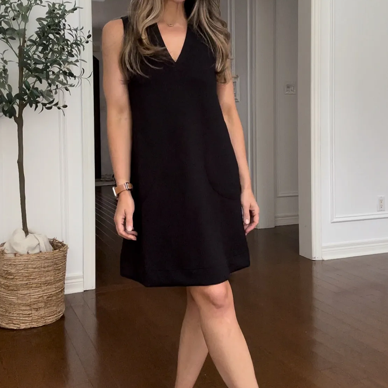 Paket Inkluderat: 1 * Kvinnors elegant ärmlös klänning med V-ringning