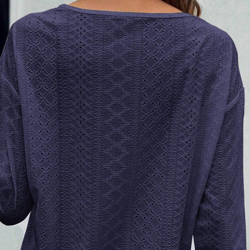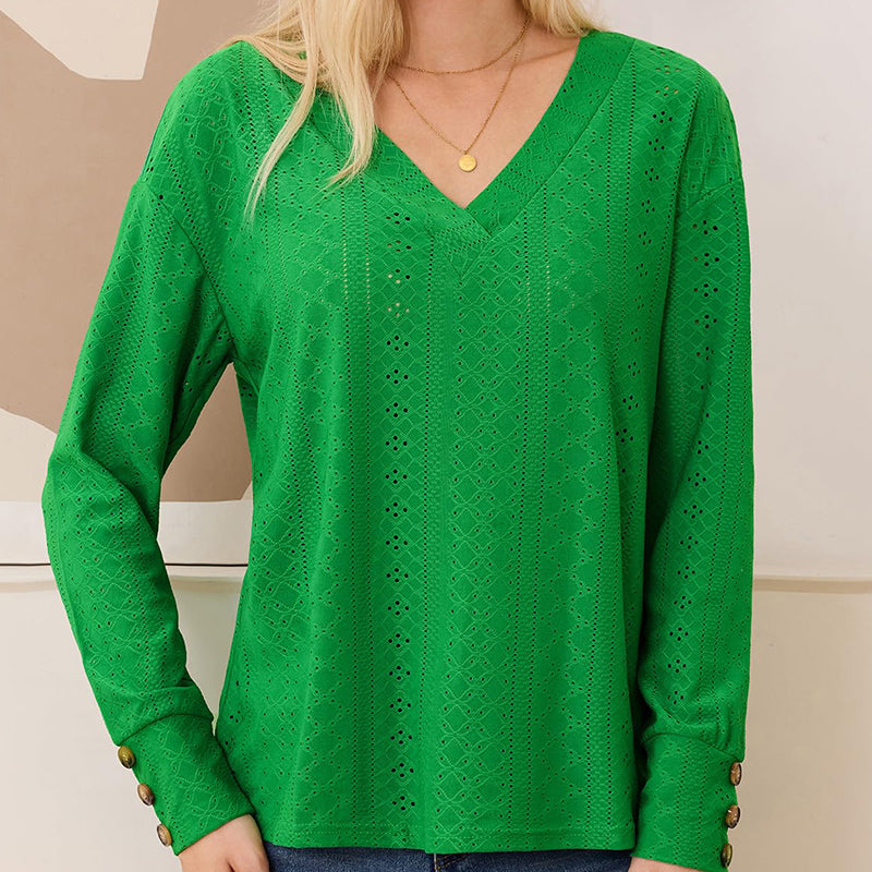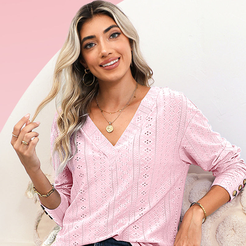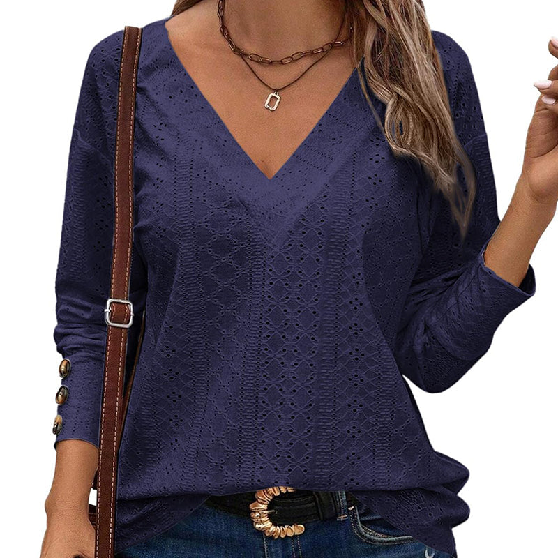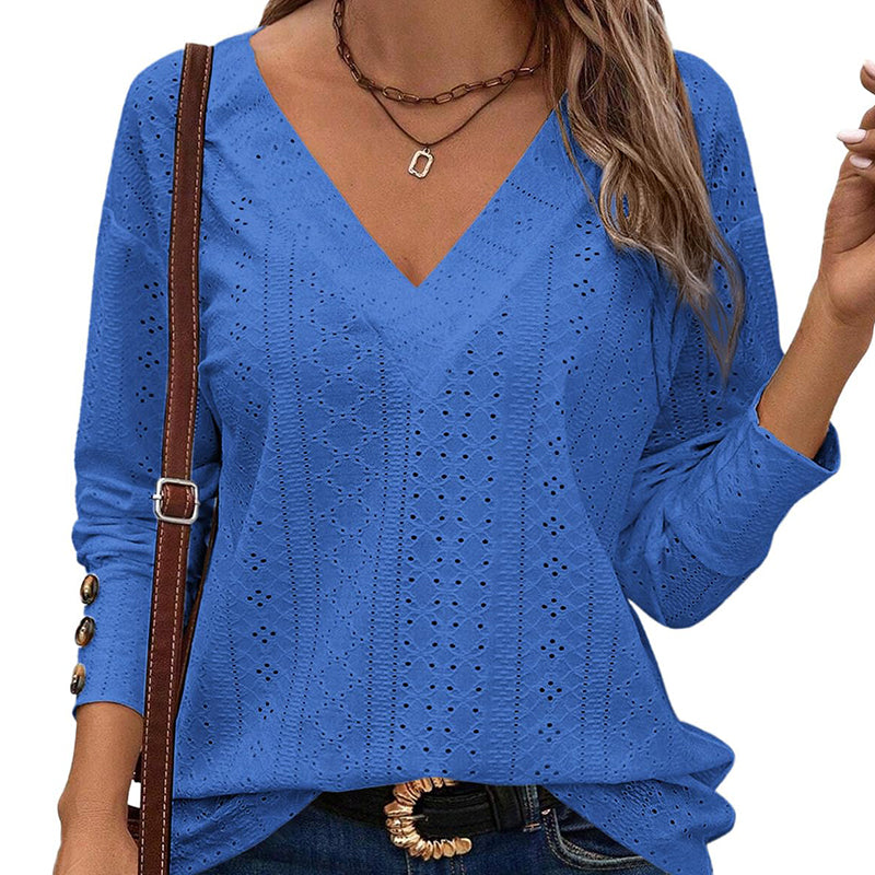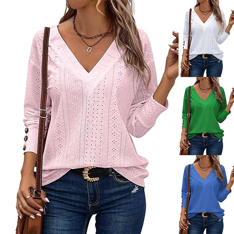 Kvinnors mode ihålig topp med v-ringad och långärmad