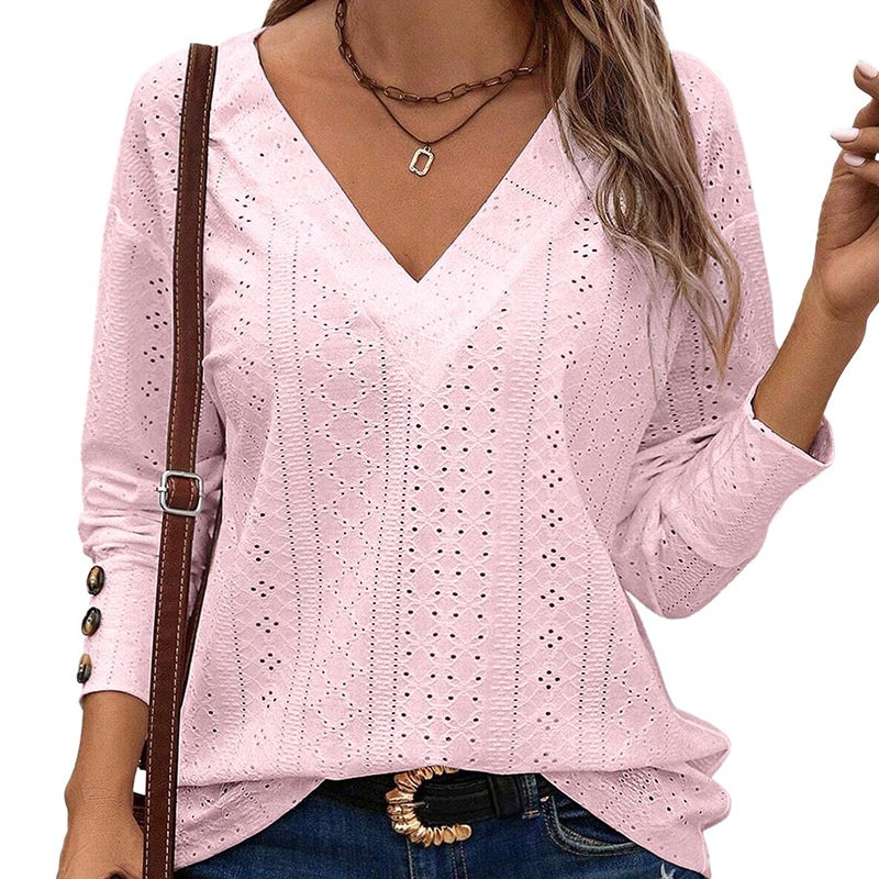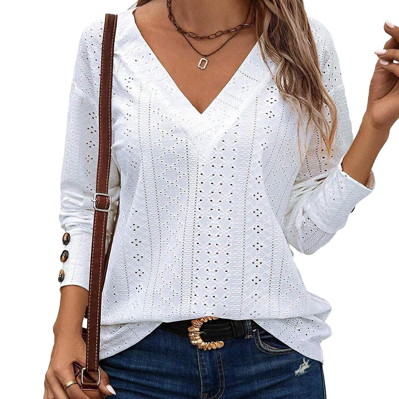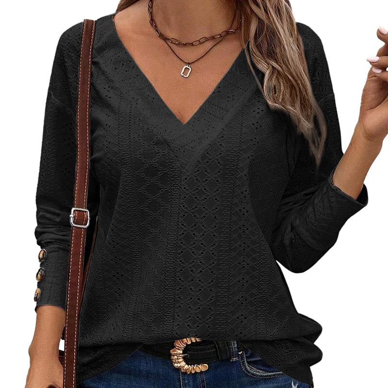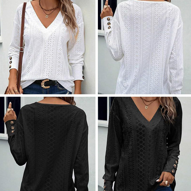 Paketet Inkluderar: 1 * Kvinnors mode ihålig topp med v-ringad och långärmad