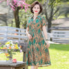 Moderiktig kortärmad klänning med knäppning och fickor för kvinnor