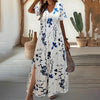 Avslappnat blommigt tryck för kvinnor med korta ärmar