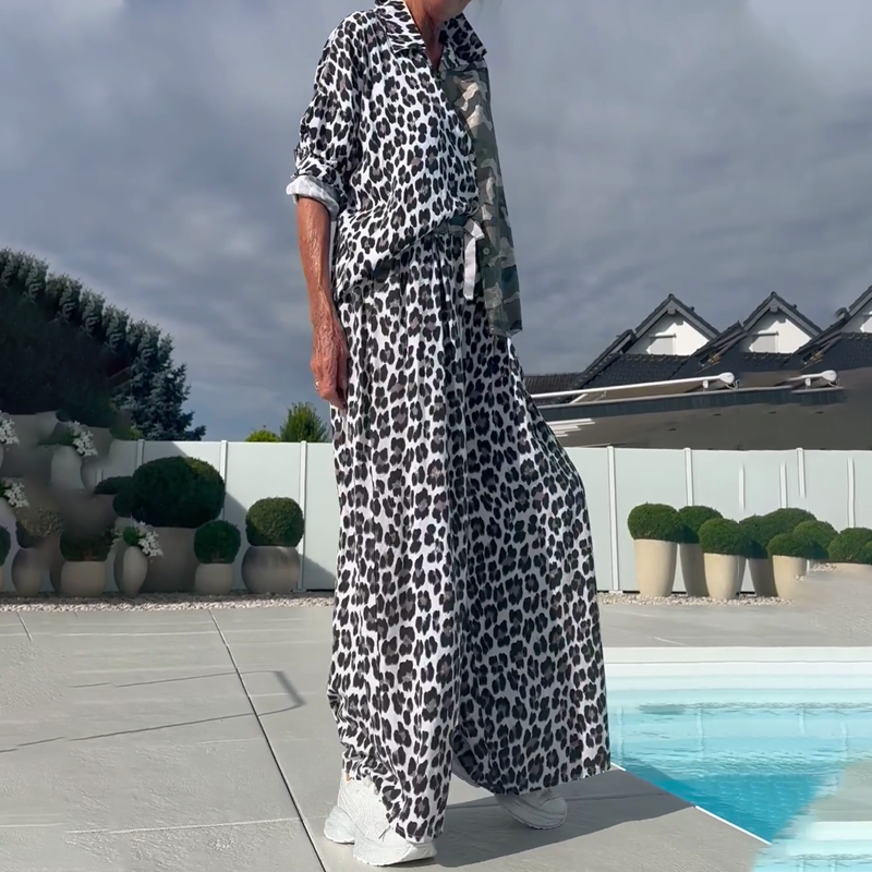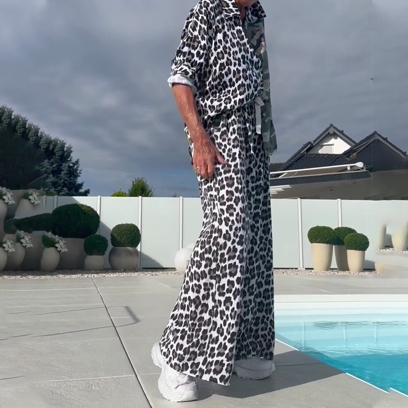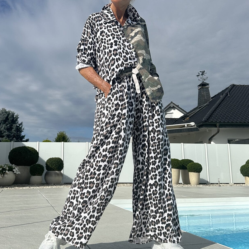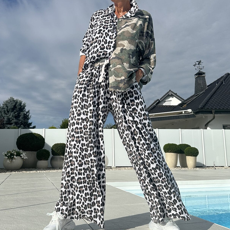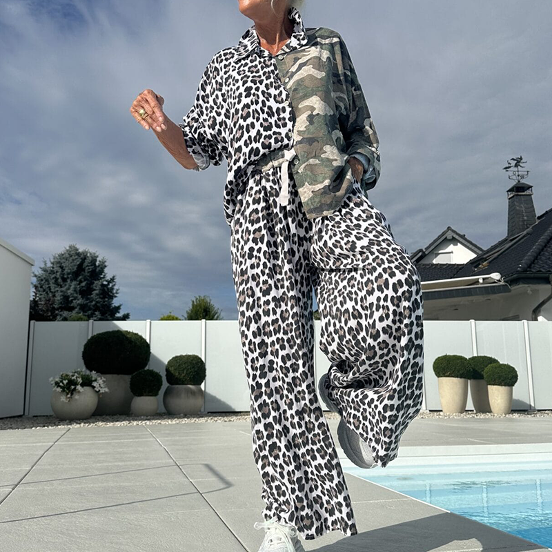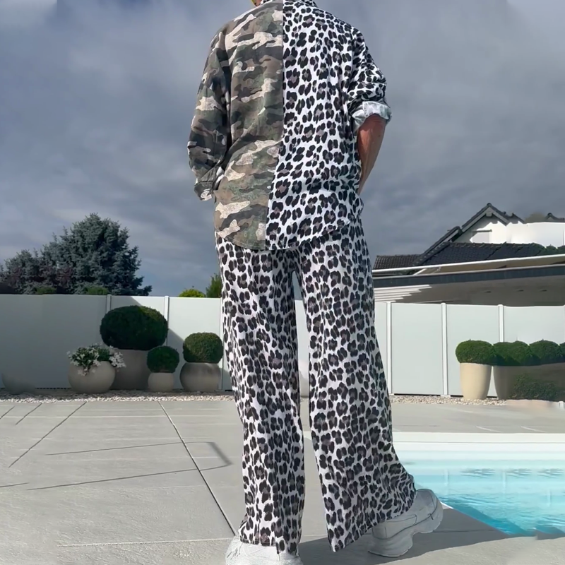 Leopardkamouflage skjorta och byxor, 2-delat set