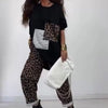 DJÄRV PATCHWORKDESIGN - Gör ett statement med varje steg. Edgy Patchwork Outfit kombinerar en djärv mix av leopardmönster och ränder för en look som verkligen sticker ut. Den svarta toppen med en kontrasterande leopard- och randdesign gör att du kommer att dra blickarna till dig vart du än går. Denna slående kombination tillför ett element av vild sofistikering till din garderob, vilket ger dig en outfit som förkroppsligar både självförtroende och stil.