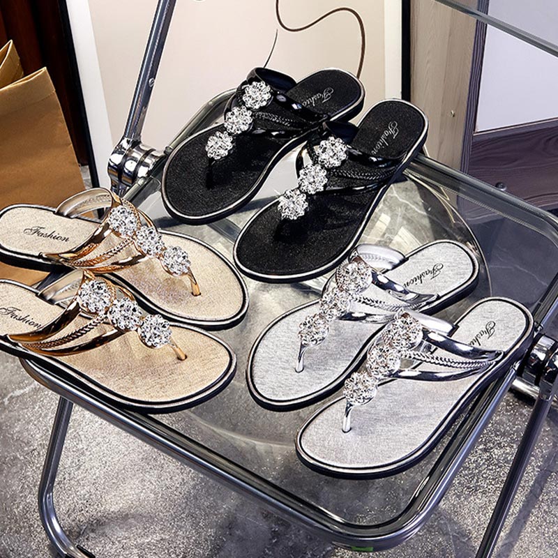 BLOMSTERDESIGN: Dekorerade med eleganta blomsterdekorerade strass, tillför dessa sandaler en touch av glamour och sofistikering till din avslappnade sommarstil.