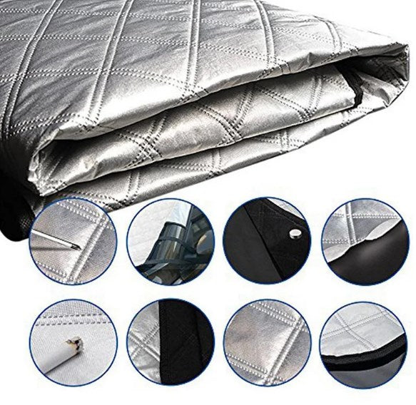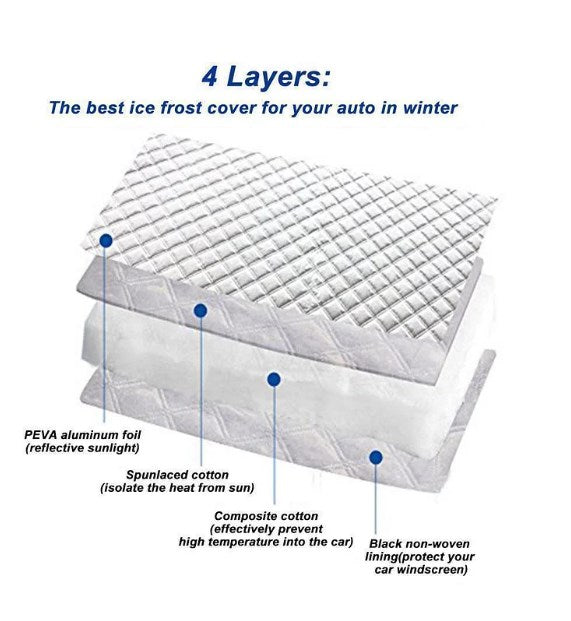 - ⛄Material av hög kvalitet: Tillverkad av högkvalitativ aluminiumfilm och bomull. Den tjockare och mer hållbara designen gör vindrutesnöskyddet mer lämpligt för din bil och ger din bil ett bra skydd under blåsiga, regniga och snöiga dagar.