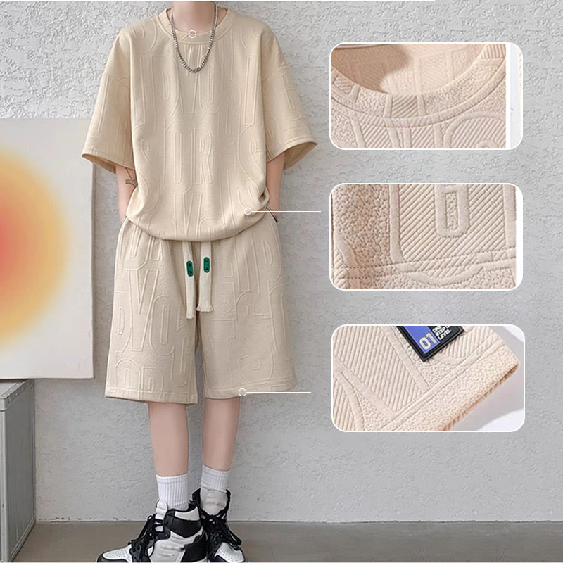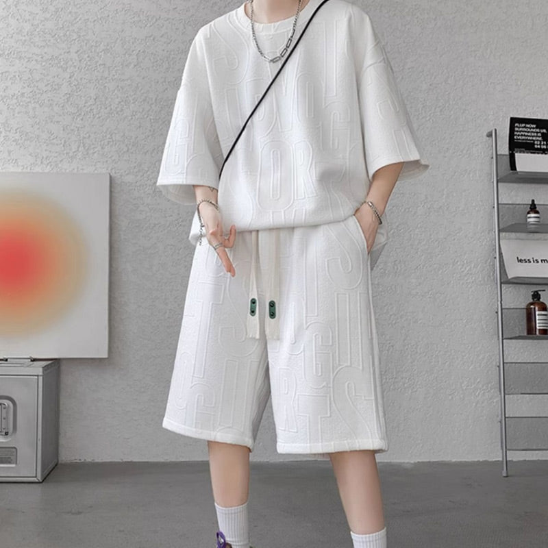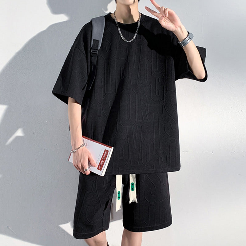 1 * T-shirt med kort ärm och shorts i stor storlek för män