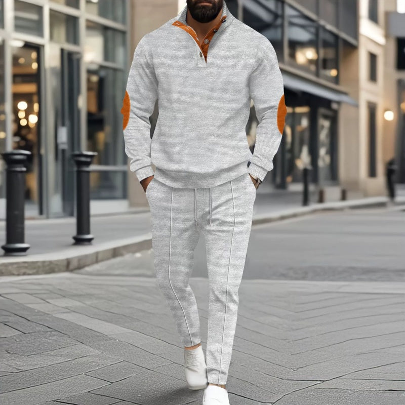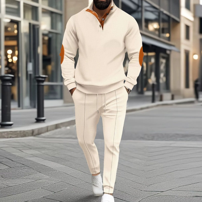 Sweatshirt och byxor med halv dragkedja i stickat material för män