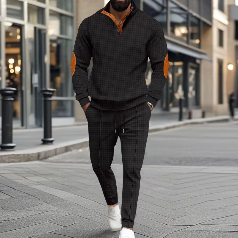 Paketet innehåller:1*Stickad sweatshirt och byxor med halv dragkedja för män