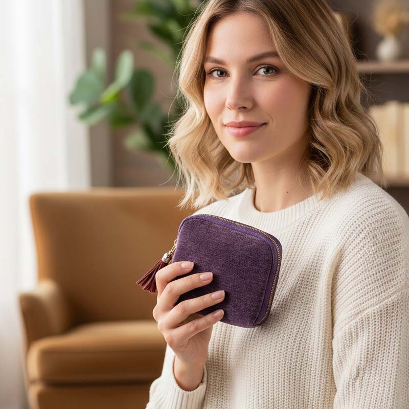 ELEGANT TASSEL ZIPPER - Den eleganta tofsen ger en sofistikerad touch samtidigt som den säkerställer en säker och smidig dragkedja. Den ser till att dina smycken förblir säkert förvarade i påsen och kombinerar mode med funktion.