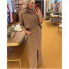 Minimalistiskt tvådelat set - halvärmad topp och kjol med delad nederkant