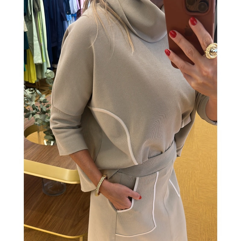 HALVÄRMD TOPP - Balanserad täckning, komfort som andas. Toppen är designad med halva ärmar och en mjuk halsringning som ger rätt balans mellan täckning och andningsförmåga. Den är perfekt för övergångssäsonger och för att användas inomhus och utomhus. Den lösa passformen ger komfort hela dagen och gör den till ett perfekt plagg för en avslappnad styling.
