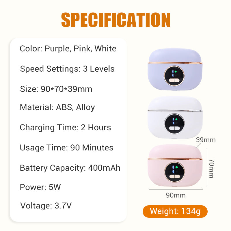 KOMPAKT OCH UPPLADDNINGSBAR: Dess lätta, bärbara design och batteri med hög kapacitet gör den idealisk för användning hemma eller på resan. Njut av upp till 90 minuters sladdlös användning efter en enda laddning för bekväm nagelvård var som helst.