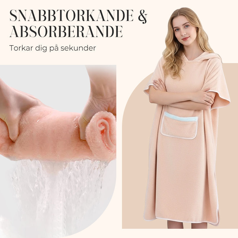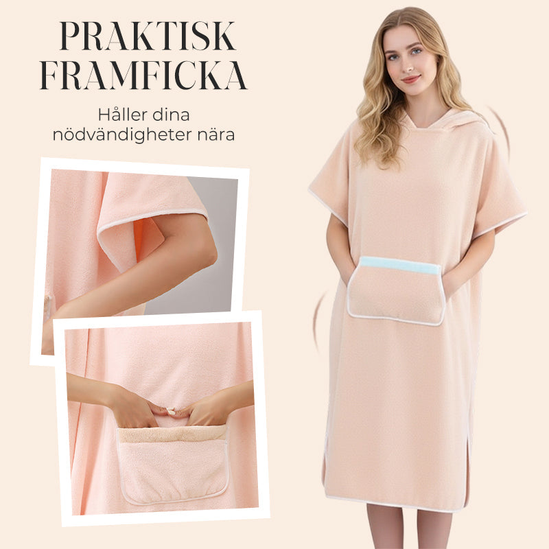 MED HUVA – Ger enkel täckning av hela kroppen och är lätt att ta på och av. Den integrerade huvan ger extra värme och hjälper håret att torka snabbare.