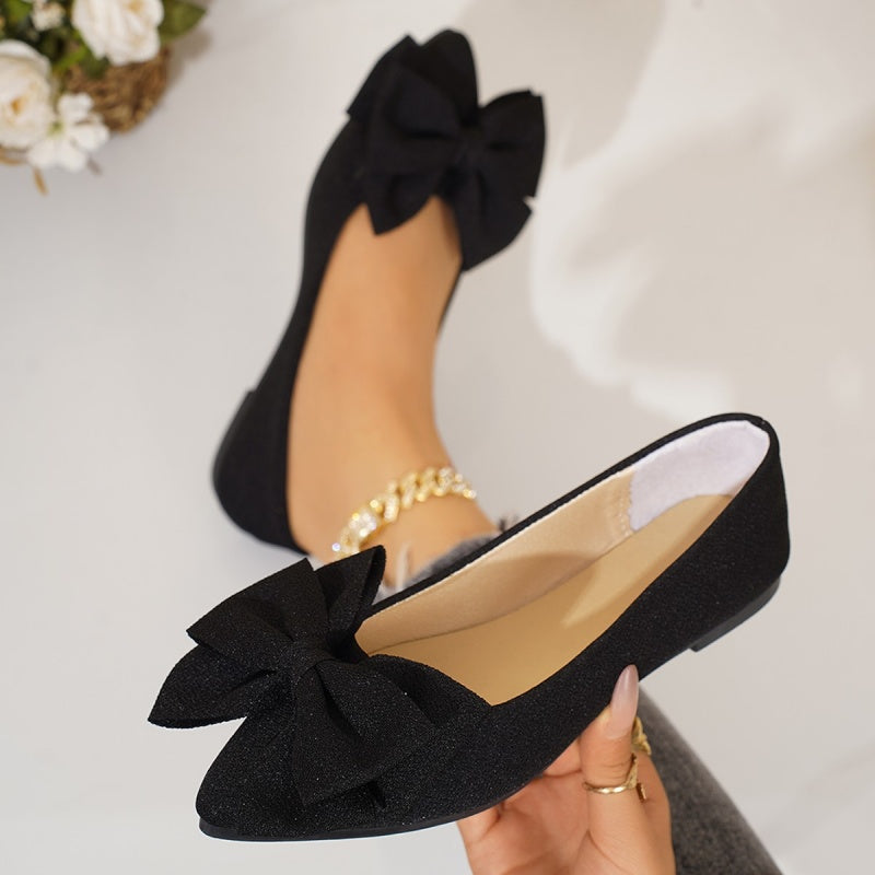 Spetsiga ballerinas med rosett för kvinnor