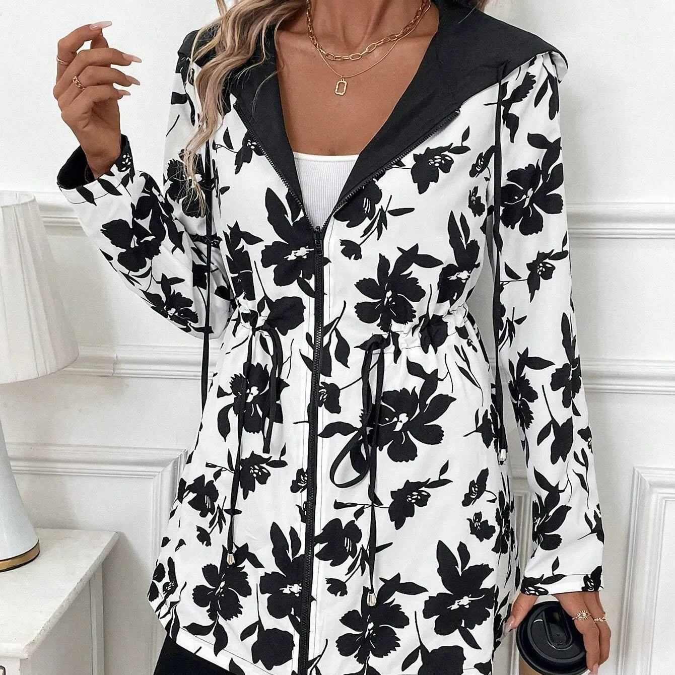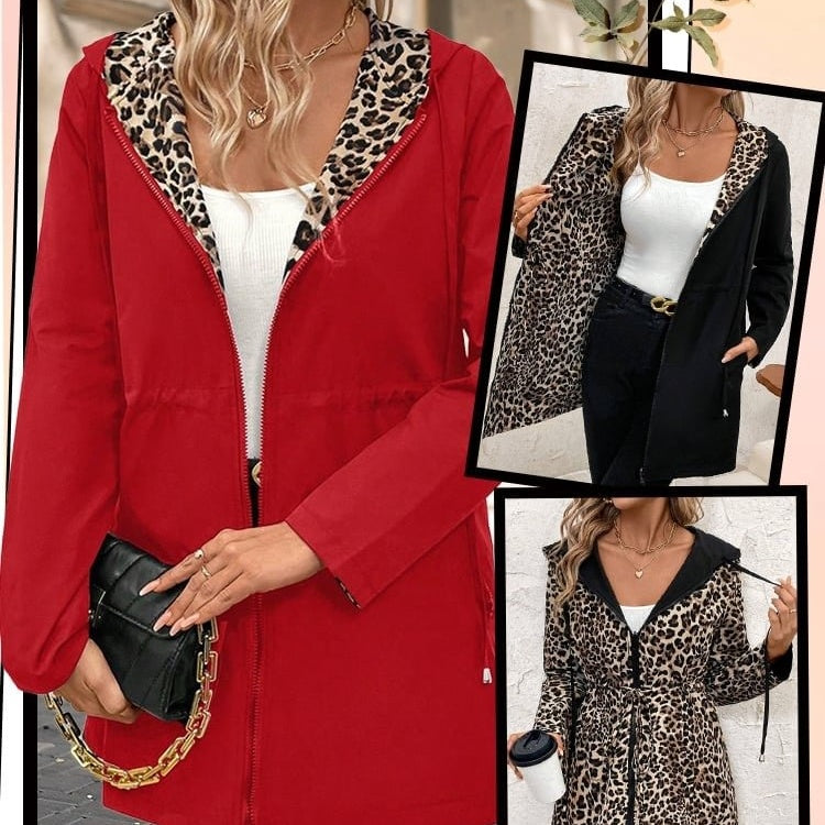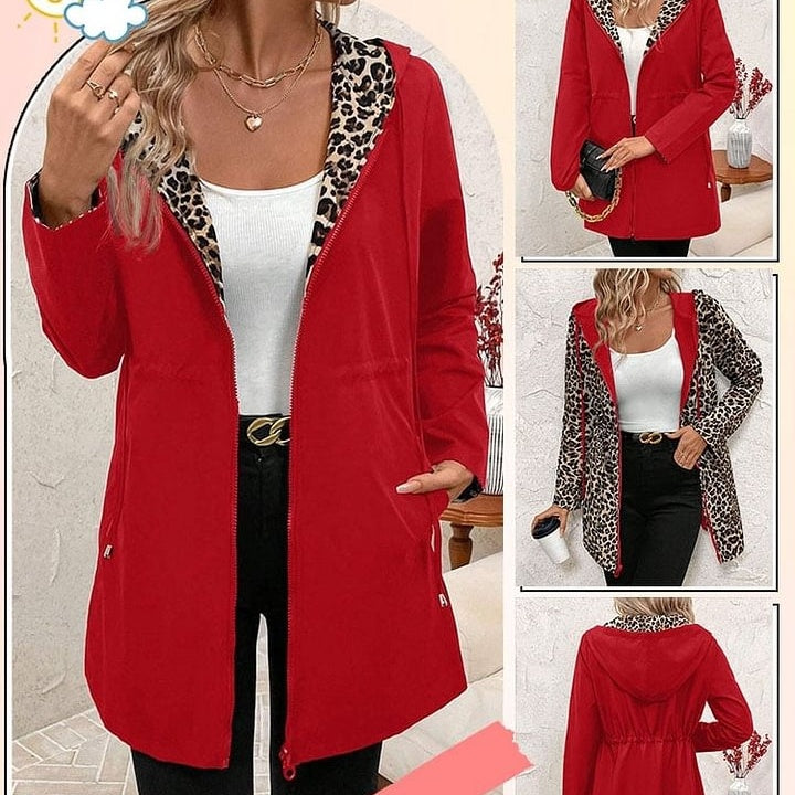Vändbar jacka med dragkedja och huvtröja för kvinnor