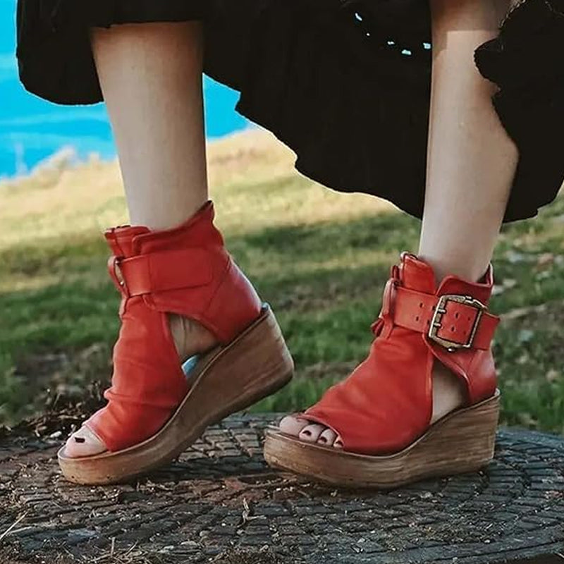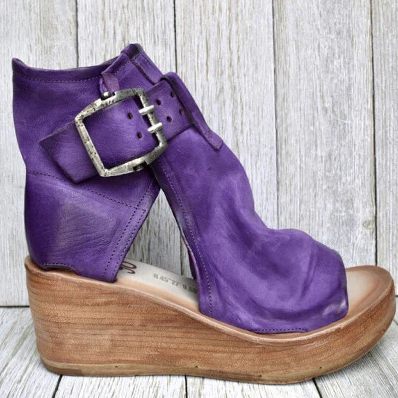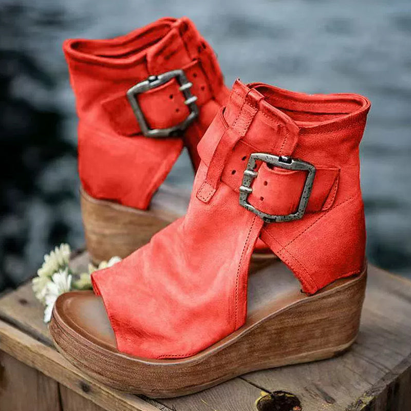 Peep-Toe Wedge Ankelstövlar med spänne